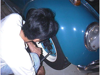 タイヤをはずさないことにゃ作業はできんので、5穴のタイヤをはずす。5穴ははずしやすいねぇ。