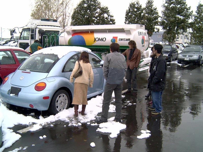 限定色の新車に群がるオフメンバー達。