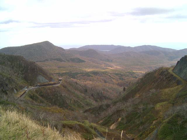 オロフレ峠山頂からの景色。すでに紅葉どころか冬みたい。